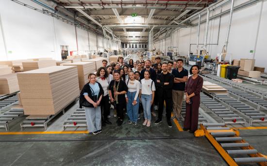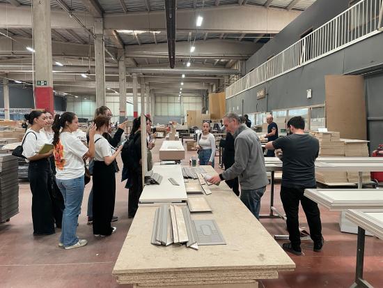 Teknik gezinin ikinci durağında ise Lale Orman A.Ş.’nin panel mobilya üretim tesisi Sarmobi ziyaret edildi. Burada firma yetkilileri, modüler mobilya sistemleri, tasarım kararları, kullanılan malzemeler, üretim teknikleri ve otomasyon süreçleri hakkında kapsamlı bir bilgilendirme sunumu yaptı. Öğrenciler, çağdaş mobilya üretiminde teknolojinin tasarımla nasıl bütünleştiğini fabrika ortamında doğrudan deneyimledi.