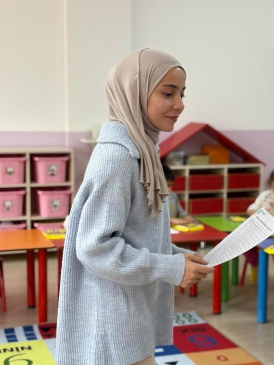 İç Mimarlık Bölüm Başkanı Doç. Dr. Eda Balaban Varol danışmanlığında yürütülen “Okul Öncesi Eğitim Yapılarında İç Mekân ve Renk İlişkisinin Değerlendirilmesi: 4-6 Yaş Çocuklarının Renk Tercihleri” başlıklı proje kapsamında, 4-6 yaş grubu çocukların mekân algısı ve renk tercihlerini incelemeye yönelik uygulamalar gerçekleştirildi. Bu doğrultuda hazırlanan iç mekân çizimleri, 23 öğrenci tarafından renklendirilerek değerlendirildi. Çocukların etkinliğe gösterdiği yüksek ilgi ve motivasyon, saha çalışmasının verimli bir şekilde tamamlanmasına katkı sağladı.