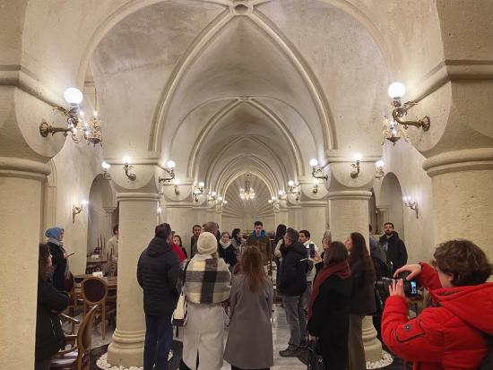 Programın ikinci bölümünde ise Mustafapaşa beldesinde faaliyette bulunan Signature Cave Cappadocia, Trademark Collection by Wyndham oteli ziyaret edildi. Yapı içerisindeki seçili mekânlar incelenerek tasarımın işlevsel ve estetik boyutları değerlendirildi; tamamlanmış bir projede tasarım kararlarının kullanıcı deneyimi ve mekânsal kalite üzerindeki etkileri uygulama örnekleri üzerinden aktarıldı.